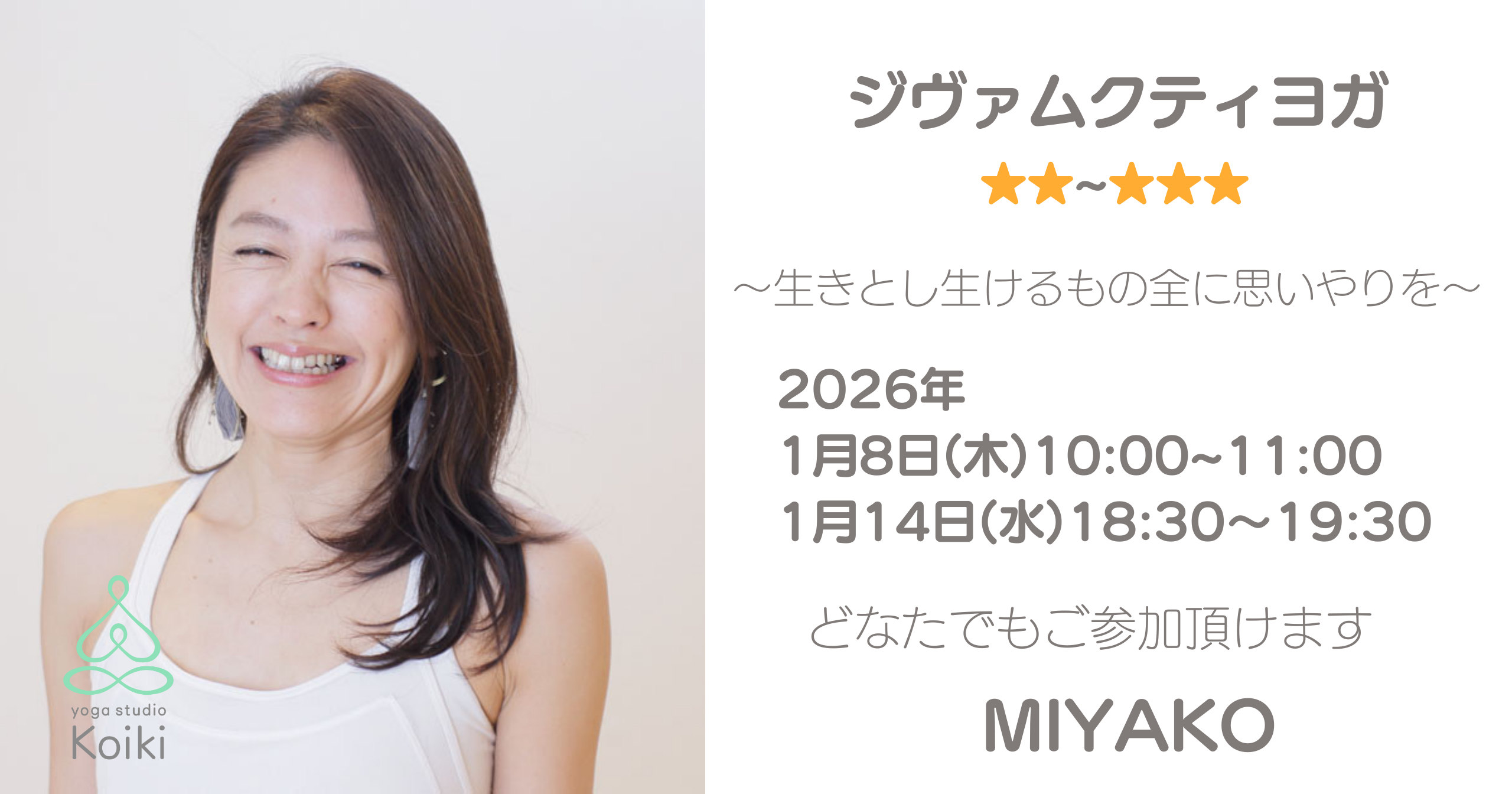 【ご注意】info@www.yoga-koiki.comより仮予約メールを送信させて頂きます。返信用アドレスを携帯アドレスで設定された方は、迷惑メール対策などのドメイン指定設定を「受信可」に設定をお願いします。※ご予約完了メールが受信されない場合は077-536-5317までお問合せください。※領収書をご希望される方は当日受付スタッフまでお声掛けください。