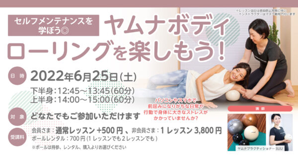 【終了】【 SPECIALLESSON】6月25日(土)★~★★ヤムナボディローリングを楽しもう!