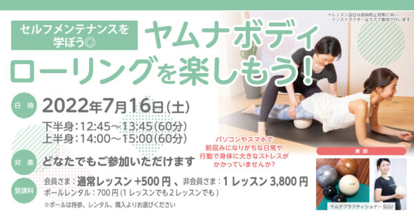 【終了】【 SPECIALLESSON】7月16日(土)★~★★ヤムナボディローリングを楽しもう!