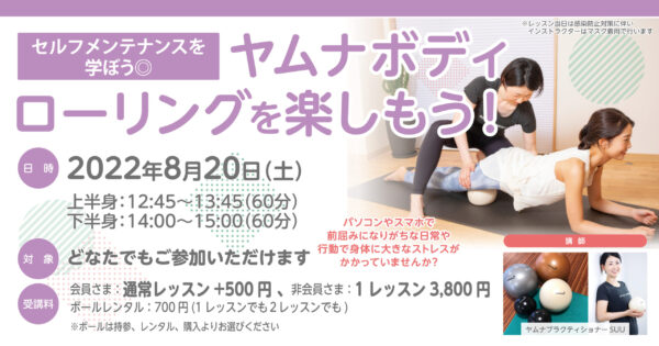 【終了】【 SPECIALLESSON】8月20日(土)★~★★ヤムナボディローリングを楽しもう!