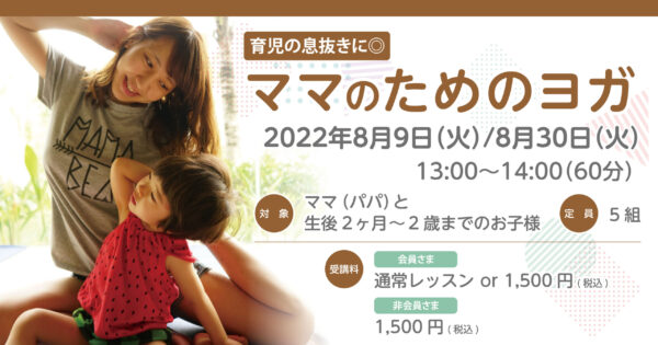 【終了】【SPECIALLESSON】8月9日(火)/8月30日(火)★ママのためのヨガ