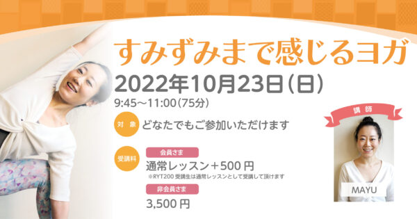 【終了】【 SPECIALLESSON】10月23日(日)すみずみまで感じるヨガ