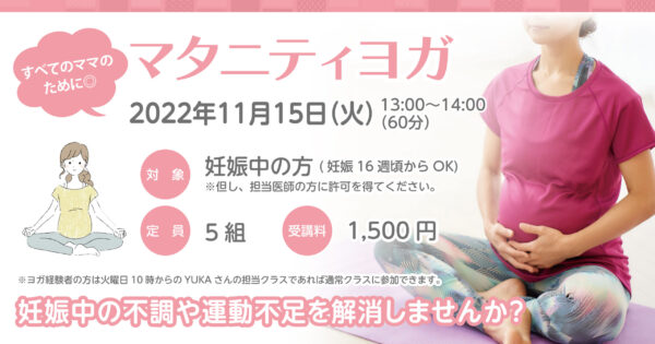 【終了】【SPECIALLESSON】11月15日(火)★マタニティヨガ