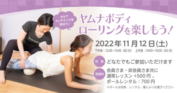 【終了】【 SPECIALLESSON】11月12日(土)★~★★ヤムナボディローリングを楽しもう!