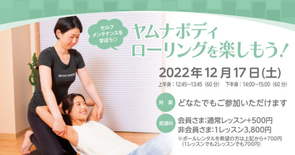 【終了】【 SPECIALLESSON】12月17日(土)★~★★ヤムナボディローリングを楽しもう!