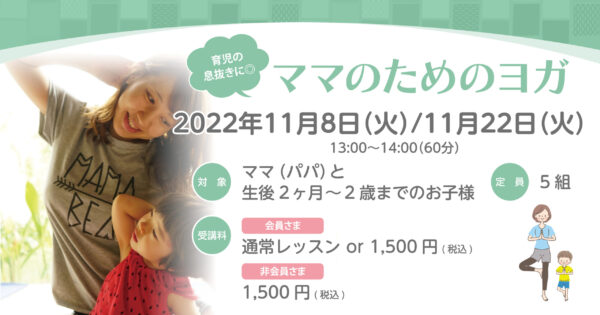 【終了】【SPECIALLESSON】11月8日(火)/11月22日(火)★ママのためのヨガ
