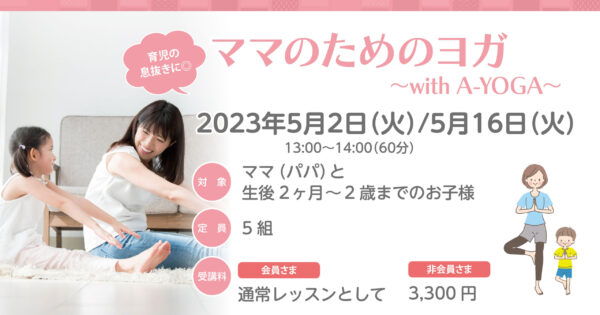 【終了】5月2日(火)/5月16日(火)★★ママのためのヨガ〜with A-YOGA〜