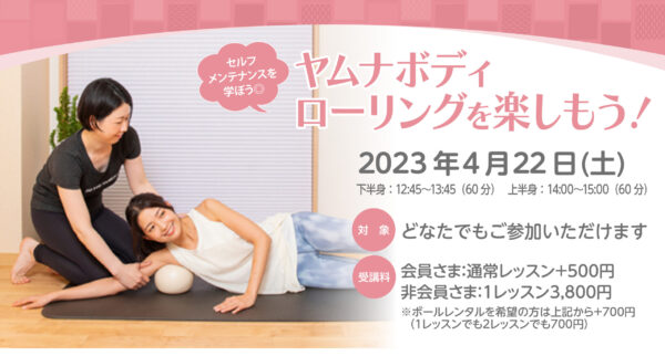 【終了】【 SPECIALLESSON】4月22日(土)★~★★ヤムナボディローリングを楽しもう!