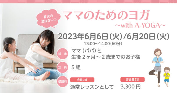 【終了】6月6日(火)/6月20日(火)★★ママのためのヨガ〜with A-YOGA〜