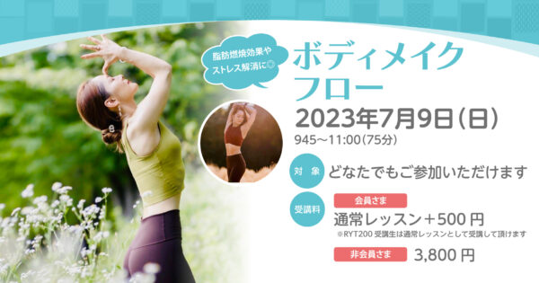 ※満席【 SPECIALLESSON】7月9日(日)★★ボディメイクフロー