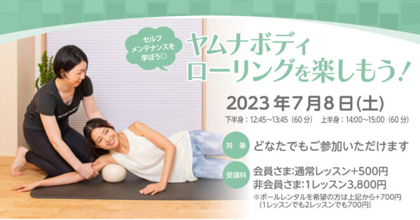 【終了】【 SPECIALLESSON】7月8日(土)★~★★ヤムナボディローリングを楽しもう!
