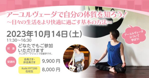 【終了】【WS】10月14日(土)アーユルヴェーダで自分の体質を知ろう!〜日々の生活をより快適に過ごす基本の方法〜