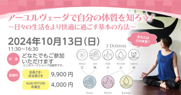 【終了】【WS】10月13日(日)アーユルヴェーダで自分の体質を知ろう!〜日々の生活をより快適に過ごす基本の方法〜