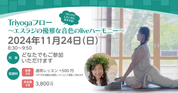 【終了】【SPECIALLESSON】11月24日(日)★〜★★Triyogaフロー ~エスラジの優雅な音色のliveハーモニー~
