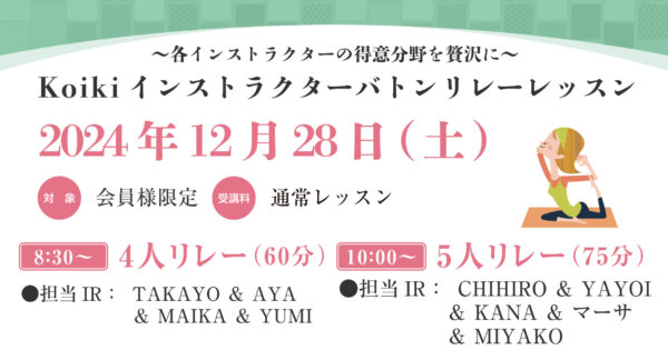 【終了】【会員限定】12月28日(土)Koikiインストラクターバトンリレーレッスン