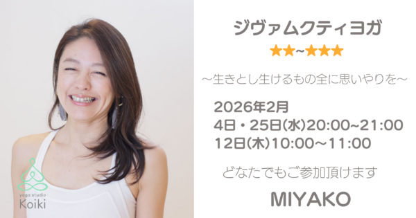 生きとし生けるもの全に思いやりを~ アーサナスタイルはアシュタンガ・ビンヤサヨガがベースになっているので、太陽礼拝も含め、ビンヤサスタイルのパワー系ヨガになりますが、ジバムクティBasicクラスは初心者でも大丈夫な内容に […]
